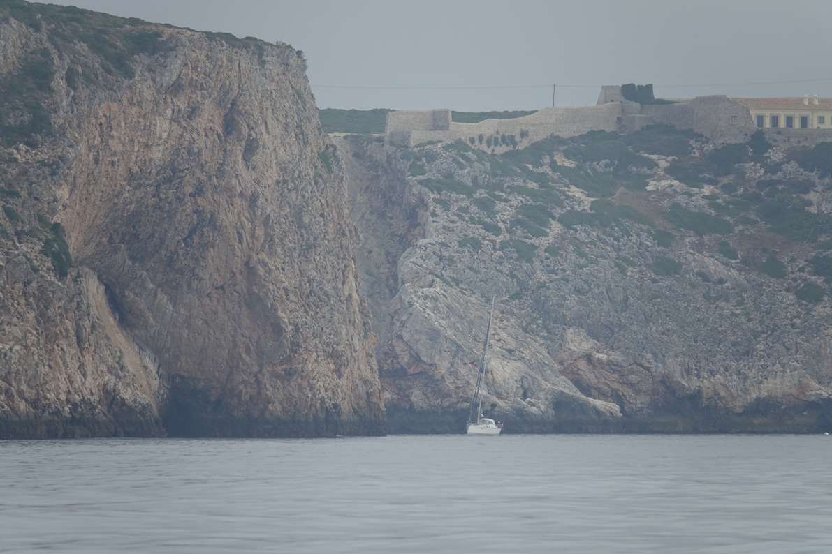 Es ist ein windstiller und dunstiger Morgen, an dem ich von meinem Ankerplatz vor den Klippen von Sagres aufbreche und das ein paar Seemeilen entfernte Cabo de São Vicente ansteuere. Wie die Spitzen eines Hufeisens ragen die beiden Kaps weit nach Südwesten hinaus und markieren zusammen Europas einsames südwestliches Ende.