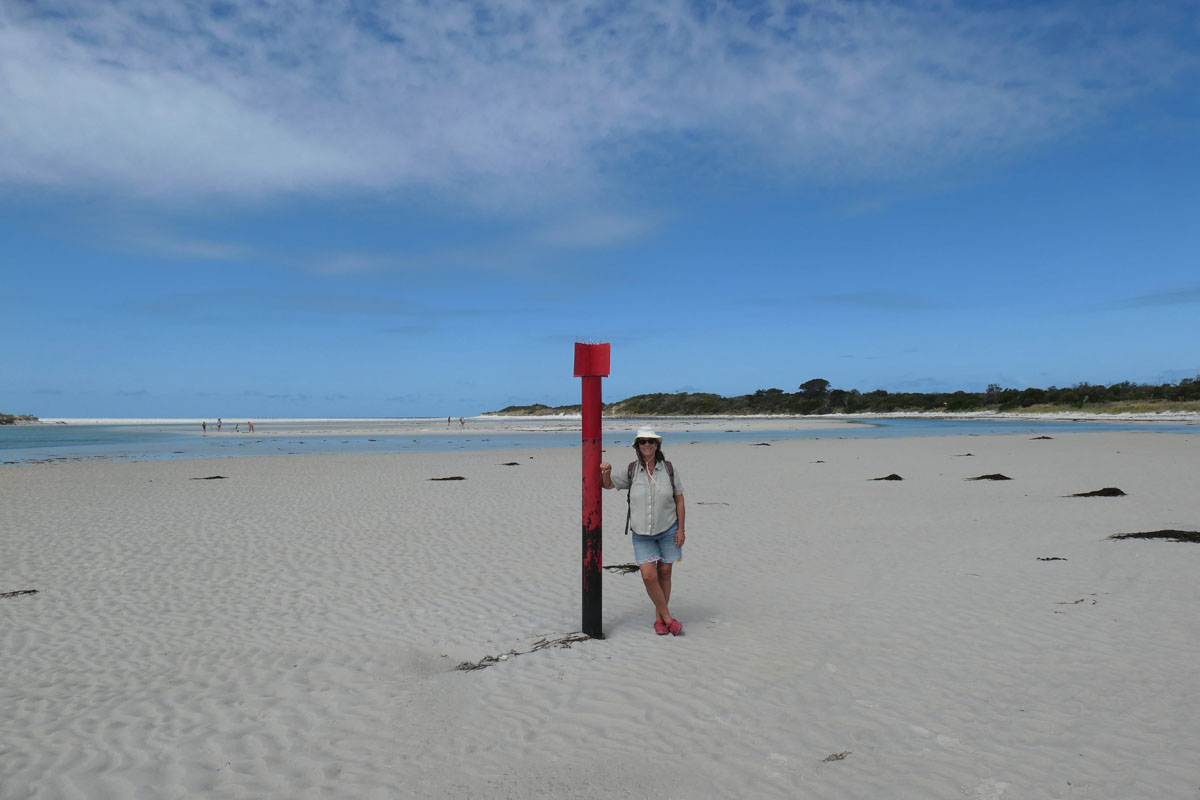 Nach einer Nacht fahren wir weiter Richtung Ansons Bay. Nur über fünfzig Kilometer Schotter zu erreichen. Die großen Wohnmobile haben wir abgeschüttelt. Auch die Besuchermengen. Ein Stellplatz, der glücklich macht. Nicht mal zur Hälfte belegt. Wohnen mit Meerblick. Vor schneeweißem Strand, der mit Hoch- und Niedrigwasser sein Gesicht verändert. Priele kommen und gehen. Sandbänke mit Möwen verschwinden wieder. Ein Farbenrausch.