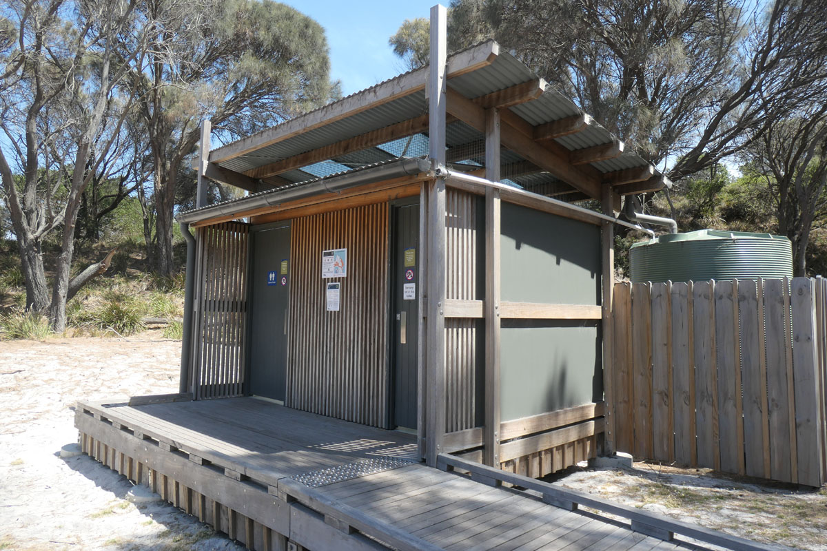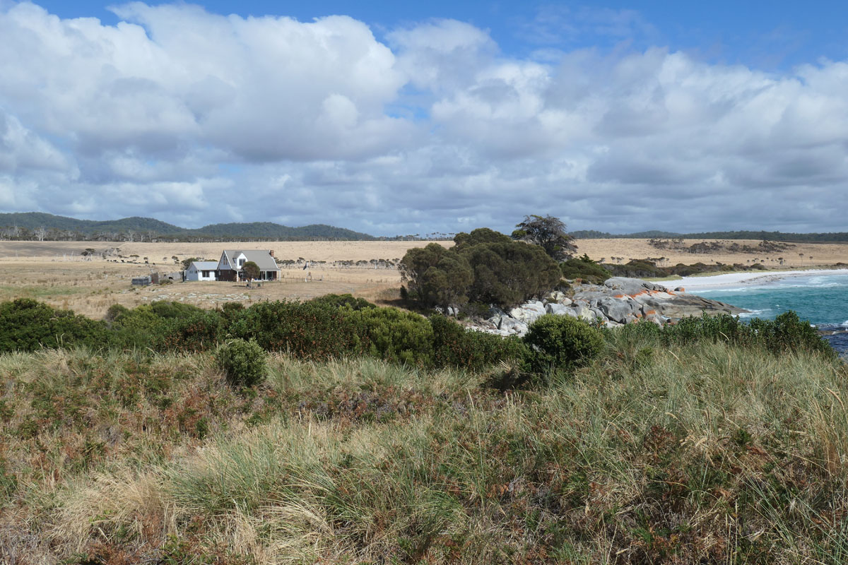 Wir haben für vier, fünf Tage Proviant dabei. Unser erster Campingplatz liegt in der Binalong Bay. Noch über asphaltierte Straßen zu erreichen. Wir bekommen trotzdem ohne Anmeldung einen Stellplatz. Der Platz hat ein paar Makel, die viele Camper verscheuchen: keine Dusche, keinen Strom und nur ein Plumpsklo. Wobei „Klo“ wörtlich zu nehmen ist. Nicht mal Wasser zum Händewaschen gibt es.