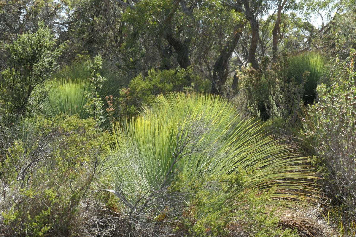 Wir haben die Wahl am menschenleeren Strand zu laufen oder auf Wanderwegen durch trockenen Küstenwald. Dieser besteht aus gedrungenen Eukalyptus-Arten, Banksien, heideartigen Sträucher und einem Meer aus Grasbäumen.
