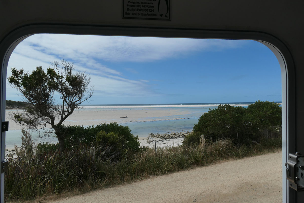 Was wir im großen Australien nicht geschafft haben, gelingt in Tasmanien. Campen mit direktem Meerblick.