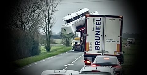 Schauspiel auf der D160 zwischen La Roche-sur-Yon und Les Sables-d’Olonne in der französischen Vendée: Ein riesiger Fahrtenkatamaran, im 70-Grad-Winkel gekippt, sorgt für einen Stau auf der Landstraße. Was dahintersteckt.