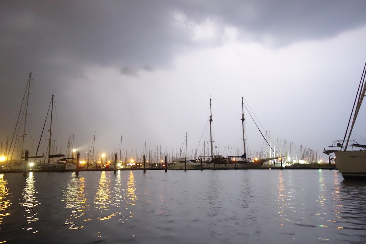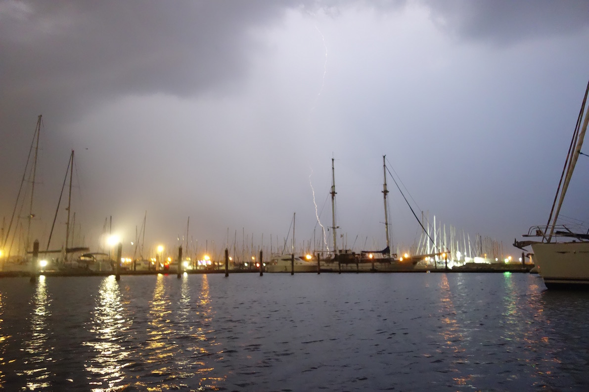 Ich drehe LEVJE auf einen Kurs zwischen den beiden Molenfingern ein, die spitz zulaufen, und mache mich an die Arbeit. Das Deck nach dem Ablegen klarieren. Aufräumen. Erst die fünf, sechs Leinen, die noch herumliegen, sauber in Schlingen zusammenlegen. „Eine Leine aufschießen“, heißt das im Seglerdeutsch. Dann hole ich die Fender von draußen rein: Fünf große luftgefüllte Plastikwürste, die an der Bordwand hängen und davor sorgen, dass das Boot in den Gewitterböen nicht an die Pier schlägt. Und Schaden nimmt. Während all das geschieht, werfe ich alle zehn, zwanzig Sekunden einen Blick auf LEVJEs Kurs. Sie läuft zwar unter Autopilot. Aber in der engen Gasse zwischen den Molen laufen ständig Tanker, Schlepper, Stückgutfrachter ein und aus – zu blöd, wenn ich unachtsam wäre jetzt. Auf dem Meer fühle ich mich oft als Teil einer großen Gemeinschaft, wo einer auf den anderen achtet, die Ellbogen, die man auf deutschen Autobahnen kennt, gibt es selten. Dafür ist das Meer ein zu ungewisser, unsicherer Ort. Der, den Du heute unnötig verärgerst, könnte der sein, der Dich morgen im Sturm rauszieht. Nein, achtsam bleiben, während ich Leinen und Fender an der Reling festbinde, mein Schiff, während es langsam läuft, seeklar mache.