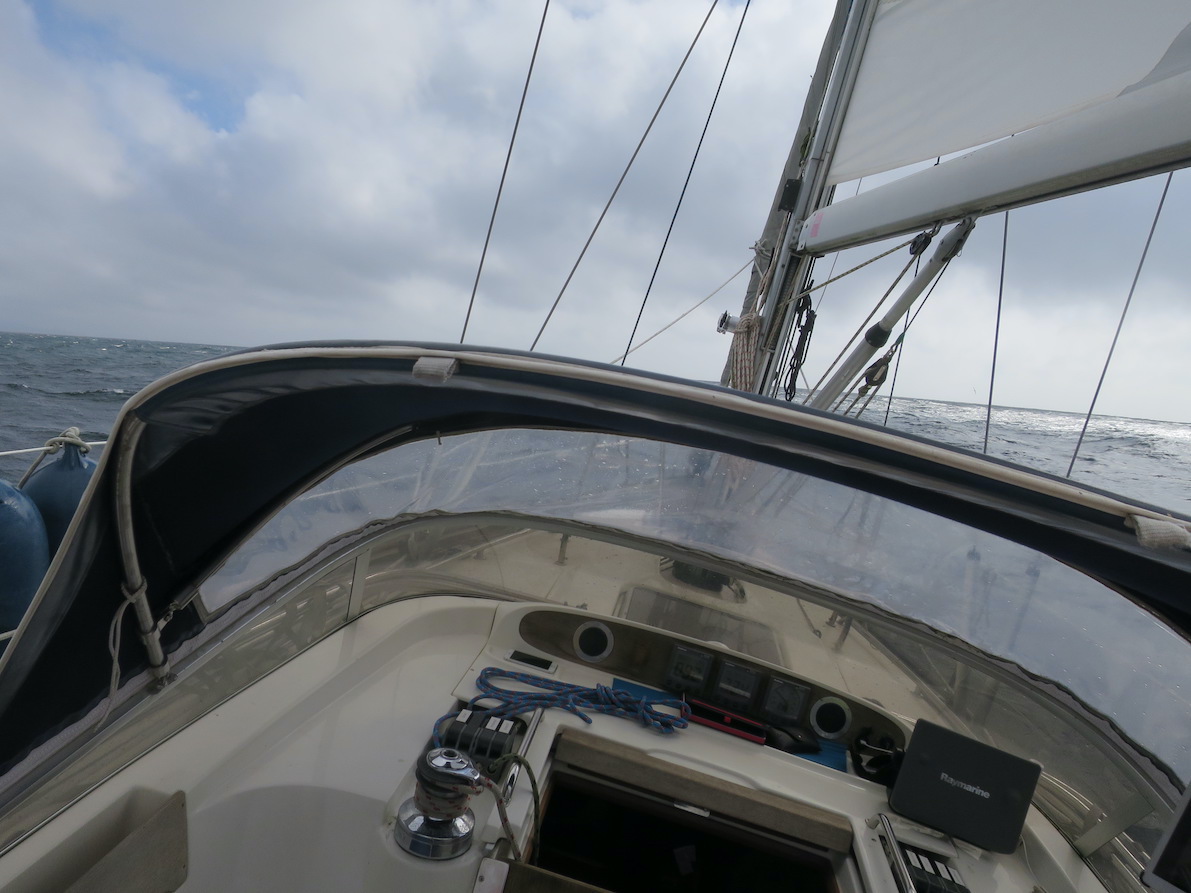 Versuch Nummer vier: Vorsegel ganz weg. Großsegel im 2. Reff auf „Hoch-am-Wind“-Kurs…