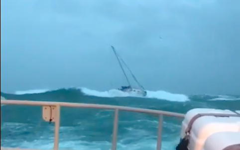 Häufigste Ursache des „Querschlagens“ ist der Verlust der Ruderwirkung, beispielsweise durch eine Welle, die im Heck eines Schiffes bricht oder einfach nur brachial das Heck herumdrückt. Beides sieht man sehr gut im Video. Die Gewalt der Welle drückt einfach das Heck herum, die Yacht schlägt quer zur Welle.
