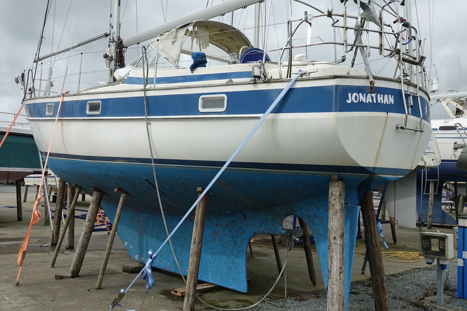 Samstag, 8. Februar, 18 Uhr. Während ich mir eben mal wieder auf windy.com das Herannahen des Sturmtiefs Sabines angesehen habe, denke ich an mein Schiff, das dieses Jahr im Winterlager in der Werft im südirischen New Ross nahe Waterford am River Barrow liegt. Besorgt habe ich Samstag Früh noch in der Werft angerufen. „Ohh“, sagte Werftchef Michael fast belustigt, „we had a series of storms this winter. Don’t worry!“ So sind Iren nun mal. Aber ich verstehe angesichts der für New Ross morgen angekündigten 60 Knoten-Böen, warum Michael – kaum dass mein Schiff im Herbst aus dem Wasser war – seine schwere Bohrmaschine in die Hand nahm und links und rechts der aufgepallten Levje Löcher in den Betonboden bohrte, um mein Schiff mit dicken Dübeln, Schrauben